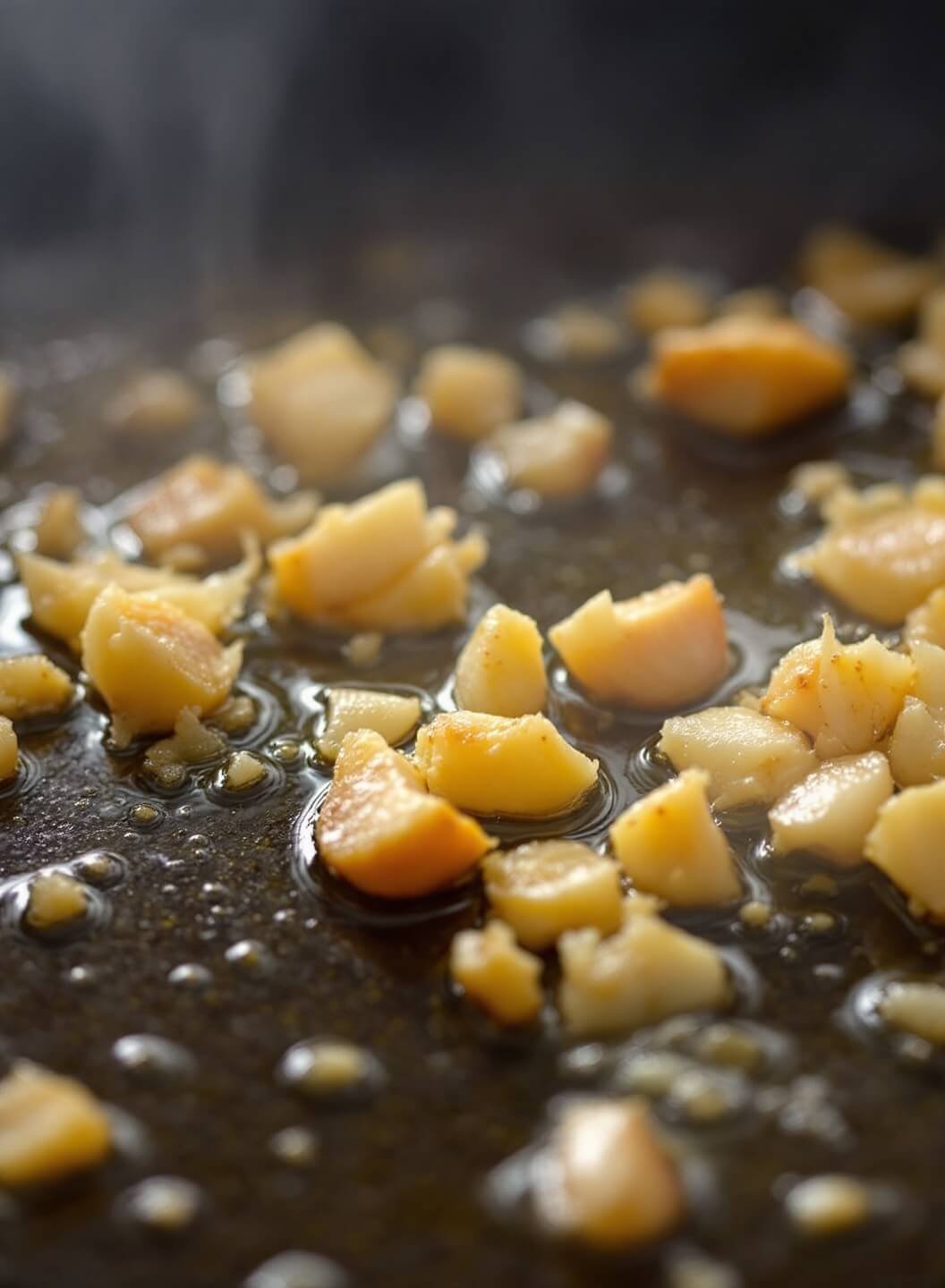 - Add garlic, cook until golden and fragrant (30 seconds)