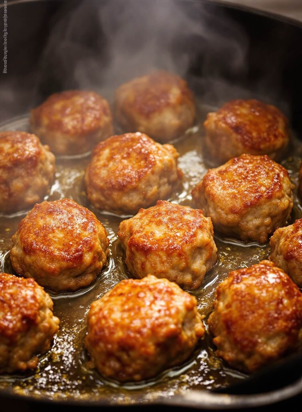 - Heat skillet over medium-high heat. Brown meatballs 5-7 minutes, turning once. Look for golden-brown crust.