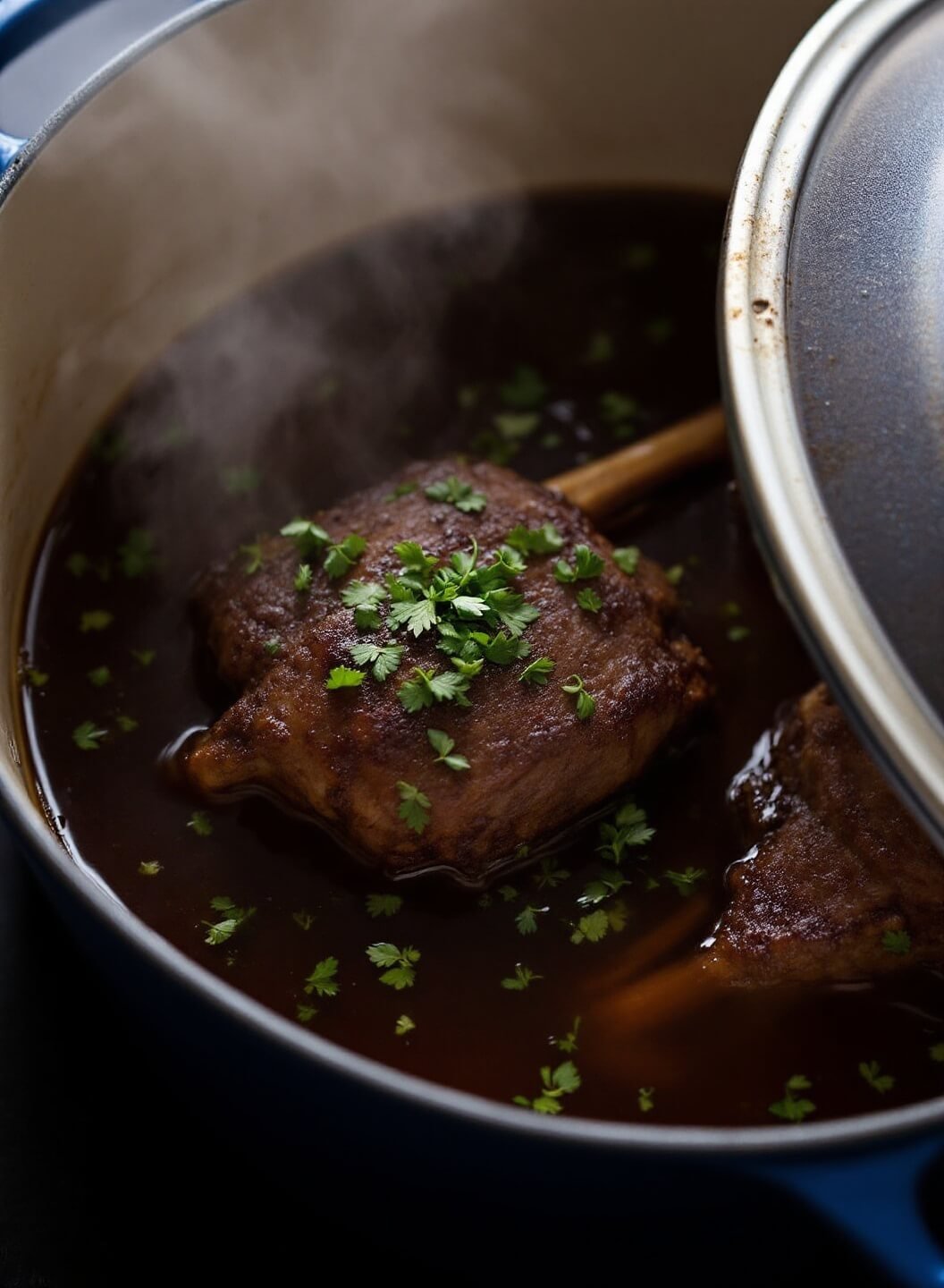 8. Cover and transfer to 325°F (165°C) oven. Cook 2.5-3 hours until meat is fork-tender.
